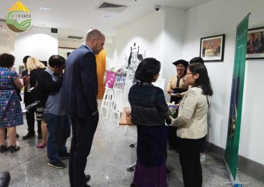 Present at the event, Ms. Ha Thi Nu – Representative of Muong Do Clean Tea Cooperative Group with the support of VietFarm introduced the Group’s production model to international friends, good initiatives in producing clean tea and dream of getting rich on the land of his homeland. In addition, the cooperative group introduced and promoted different tea products to everyone, bringing the most delicious and clean tea products made by the ethnic women of Phu district. Yen, Son La.