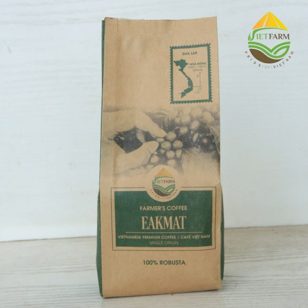 This very fine coffee is made from ripe cherries, hand-picked and grown under ecologically sustainable conditions at 700m altitude on the basaltic highlands of Hoa Dong, Dak Lak province of Vietnam. Ede ethnic minority farmers of Eakmat – Hoa Dong co-op have mastered selection of the very best beans and roast their coffee in the traditional way to obtain the pure, unique taste of organic coffee. Eakmat coffee has been Fairtrade certified since 2013.